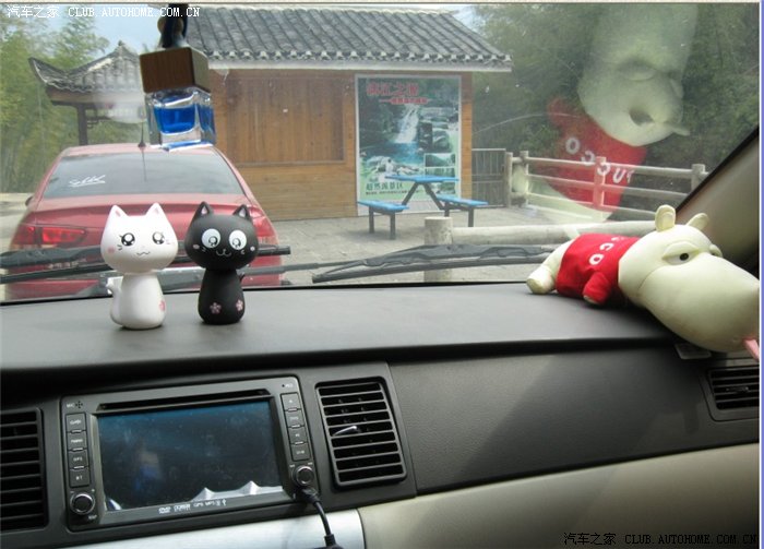 可爱的黑白摇头猫,蓝色香水,竹炭玩具狗,还有DVD导航和可视倒车雷达。