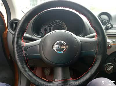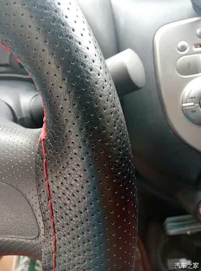之前说的方向盘套,手缝、头层牛皮,经过两年的使用表面摸着非常的舒服,像是肌肤一般的润滑, 唯一的瑕疵就是没有买全包型的 ,第一次缝所以3点 9点处缝的有点难看,但真的非常实用,强烈推荐手缝方向盘套!不要买现成但我那种!