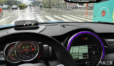 中控比较个性,操作各方面也慢慢开始上手,人性化做得不错,尤其HUD,选装城市辅助系统距离前车较近时会跳出提示,导航时会显示路线等信息