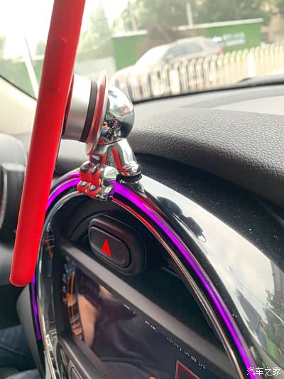 圆形大屏中控,配上多色的氛围灯,真的太炫酷了!两侧的内饰板是马云家买的,因为经典派车型内饰都是黑色有点压抑和单调,所以选择弄个其他颜色内饰板。