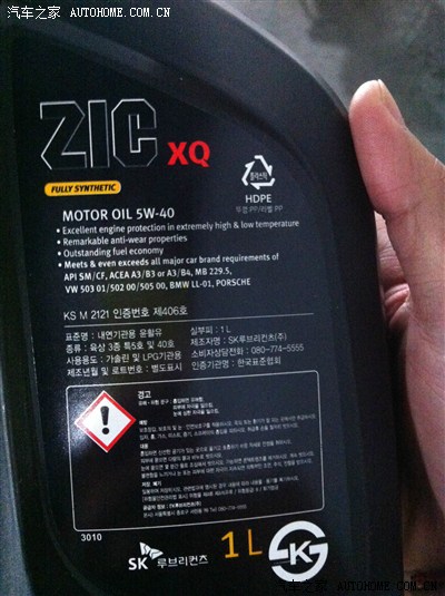 我和好多车友一样,首保过后出现爆震,非常恼火,怎么弄也弄不好,10000多公里2保的时候换了这个机油,从此爆震再没有出现过,不知道对大家有没有帮助,吉克全合成5W-40的黑桶机油,上图