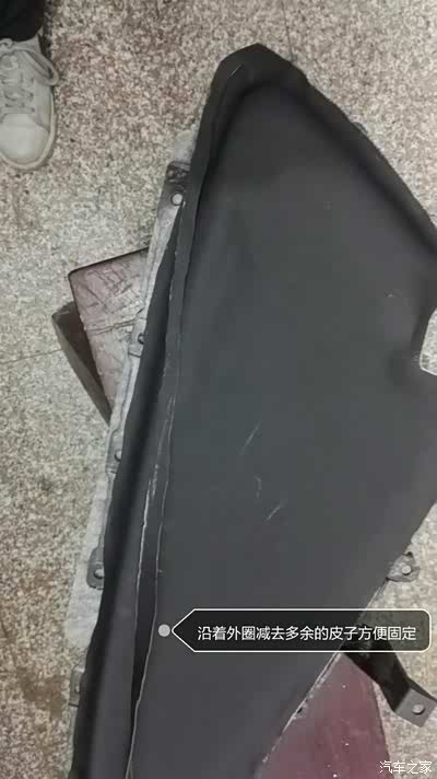 皮子粘贴好了,修剪,尽量把边上的圆孔露出来,方便螺丝固定,多余的皮子很难卡紧的,效果就不好了