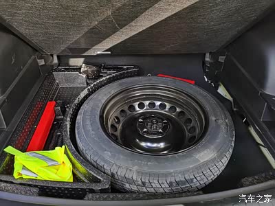 后备箱的下边是备胎、三脚架、千斤顶、反光服等随车用品,这些东西最好不要用上,但是突发事件还真不能缺少。