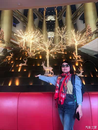 沙特的商场,老妈和麋鹿灯光合影。