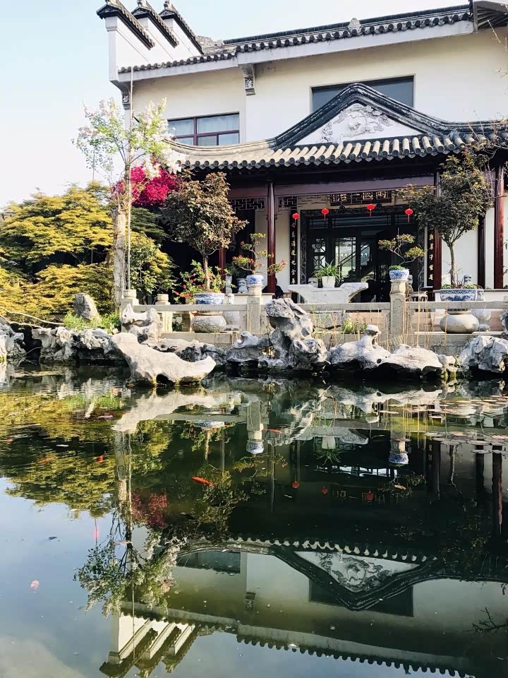 亭台楼榭、曲折回廊、假山奇树、小桥流水、溪石松竹一样不少,好似袖珍版的江南园林。住在这里,我一定舒心极了。