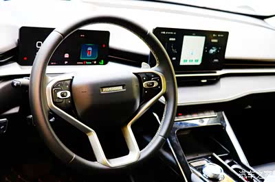 接下来就是车里的内饰及配置了,有一句话不得不说,第三代哈弗H6的内饰那是简洁而又科技感十足,仪表台和中控的两块屏确实功能强大,而且还带语音控制,方便行车时候的操作。皮质包裹的功能方向盘转动起来很轻巧,全液晶仪表会根据不同的驾驶模式而有不同的动画效果,当然是很有激情,很有运动感的,还有360全景影像和前后驻车雷达都对停车有帮助,就算车位很拥挤也能很顺利的进去。其它还有一些很实用的配置我比较喜欢,比如远程启动,尤其这个季节中午上车前提前启动好让车内温度提前降下来。手机无线充电省去了来回插充电线的繁琐。最后比较实用的配置我觉的应该是钥匙感应了,走近车子一拉门把手车子自动解锁,离开车子,一按门把手车子自动上锁,省去了按钥匙的环节,也是很好用的。