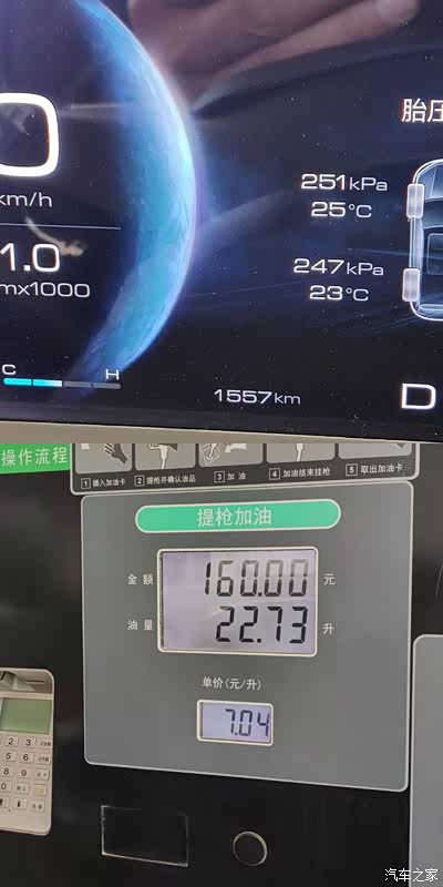 车辆导航不及百度地图可查看实时路况,往返1557公里,加油126升,百公里油耗约8.09L,听从4S店销售建议前期磨合先加的95号汽油(7.04元)。