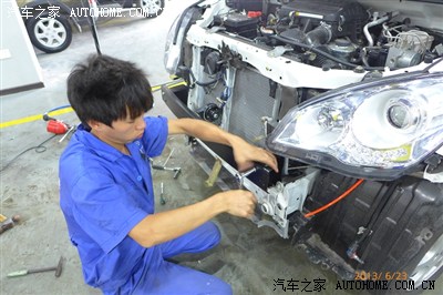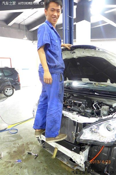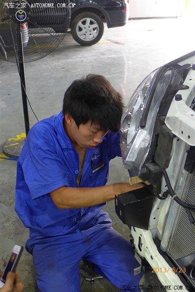 上图:安装师傅名叫:张健(重庆的车友有福了,搞汽车改装的强人,传说全重庆得警用车辆改装防撞和发动机动力等改装都出之于张建兄之手,师傅就是师傅,动手能力超强,)