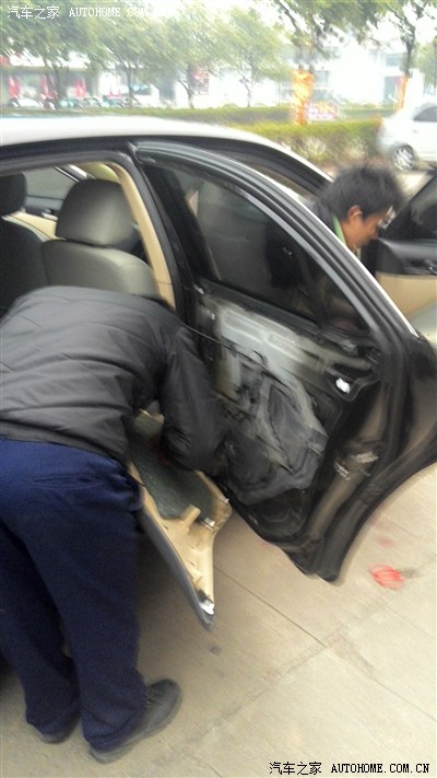 当时已经是5点半了,4s店也下班了。这里要感谢4s店的小林同志,陪我到最后,一直交代师傅帮我弄仔细点,耽误人家谈mm的时间了。因为时间晚了两个师傅齐动手,貌似前面的年轻师傅熟练点,前门的都是他装的。貌似因为前面的复杂点。