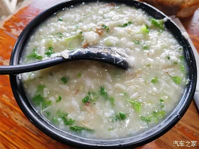 海鲜粥的味道也很鲜美,正好可以解除钵钵鸡的辣味。