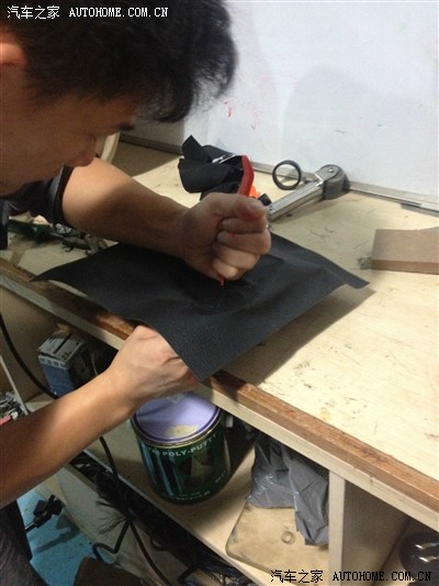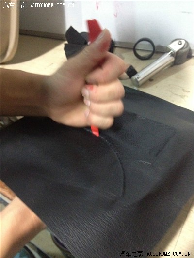 开始贴倒模磨具的外衣~~PU皮~和智跑中控台的一样~