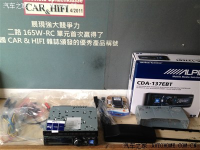 !这时候安装的技师和我说“你不如干脆加装一个好的CD机来实现你真正的音质提升、这样既没有浪费以前装的导航、又能享受汽车音响带来的高质量音乐享受”哎!!我突然觉悟了~为什么不这样做呢?好多爱好音乐的车友已经这样做过了呀!可是智跑的安装空间实在太少了~装在哪里呢?经过电话沟通和网上的参考、车子本身的勘察~我得出了一个绝伦是“可以装、但要倒模安装”为了音乐就让小智损失一把吧!开始研究CD的品牌和价格!“歌乐”“蓝点”是我的首选其次是“建伍”“阿尔派”“先锋”好的CD机是哑巴机(无源机)而且价格超贵、没考虑了~前两个牌子是欧洲品牌~找了半天么有我要的型号~最后把目光放在了“阿尔派”上面~~~经过多方面的价格咨询、实地视听、出手“阿尔派”CDA-137EBT带蓝牙、24位频点调节、数码延时、USB苹果手机连接、功能强大、可分喇叭单边根据人的视听位置进行调节的中档车载发烧CD机一台。上午来了、直奔安装点进行安装~(提前预定好的安装店)安装店位于佛山市大良区的一个“全国十大音响改装店‘的‘途歌汽车影音’价格合理且安装转业哦~