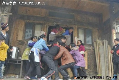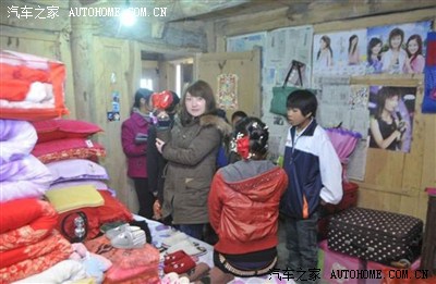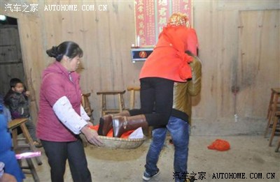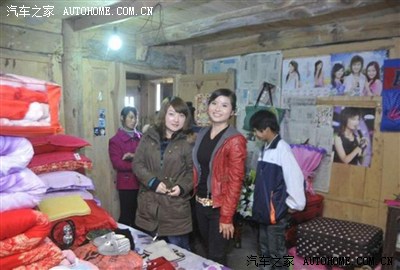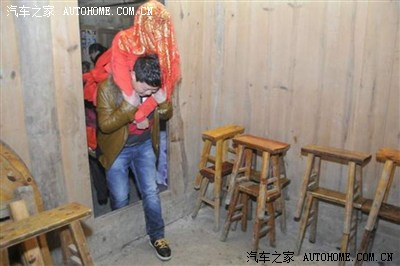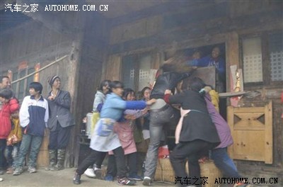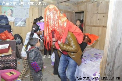 新娘就不让你们看, 擦。 脚不给下地 ,不给带走财气。木墙壁房子很少见哎 .....