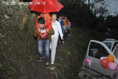 说来也奇怪,明明当时只有三点多,可是天阴的厉害,搞的跟晚上似得,其实就下午三点多。 这场景 怎么感觉不对..... (卧草,这里的新郎不容易啊,还要背着老婆下山,身子板不好的不是~~~~~~来个东瓜配排骨 。乌漆墨黑,一把红伞,有点恐怖。 )