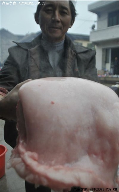这是刚杀的猪的猪肉,这是最新鲜的,那种红亮的,都是,你懂得。 那么大的猪,肥肉那么少.....