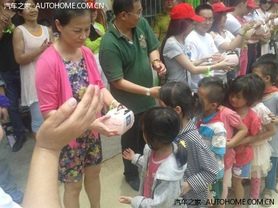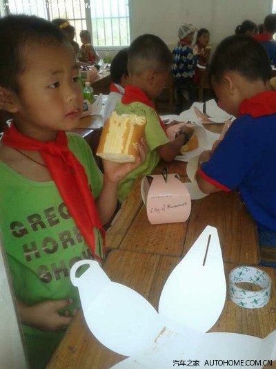 好吧。。。车上运载的泡沫箱里,装的就是这么精致包装的蛋糕。。。小学校长在活动筹备的时候给广西电视台资讯频道汽车超时代栏目组的黄导演发来这么一条信息:“黄导好!我想替梅林小学孩子们再向您提点过分的要求,能否在6.1那天送他们每人个小蛋糕?(这是校长告知是孩子们很多年的心愿,谢谢!)”;黄导回复“我尽力完成任务”;校长“太感谢了,很多孩子还不知道蛋糕是什么样子。”