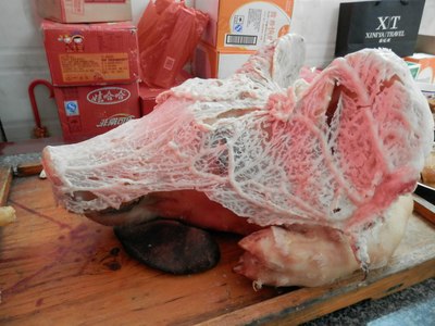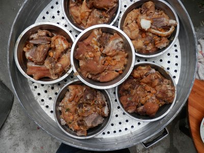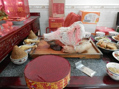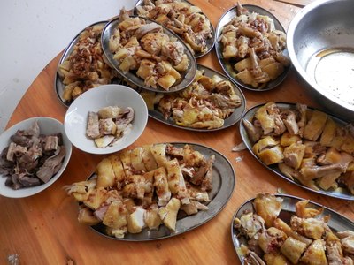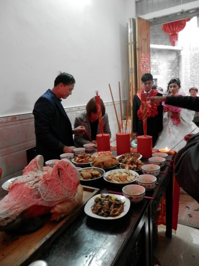 我们这里结婚要用猪头等祭祖,非常高规格的哦,还拿着一层油膜遮住二师兄的脸,犹抱琵琶半遮面。大家想一度庐山真面吗?不去酒店,民间厨师。