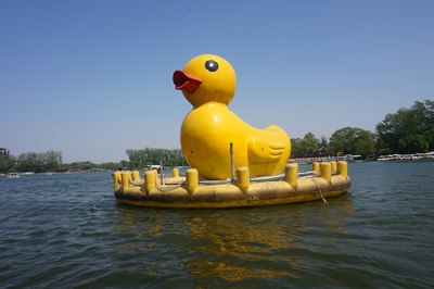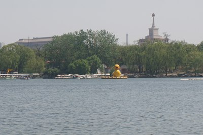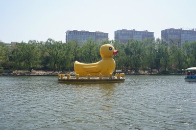 在水一方,有个大黄鸭~过去看看吧,后面那个带五角星的建筑就是军事博物馆了,当年也是北京的重要景点之一。地铁一号线,有专门的对应车站。