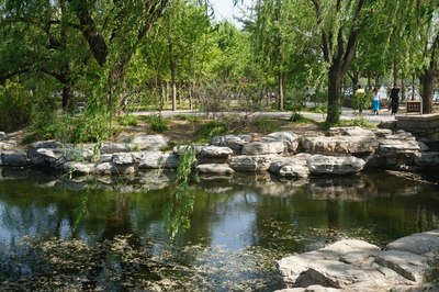 公园除了名为八一湖的大湖,还有两个内湖~其中一片水面边上有架水车,意境非常不错,当然还要摆拍~我让媳妇换了十多个角度,都不大满意,最后媳妇直接爆了:你到底拍不拍?!这照片就叫平静中的愤怒吧….