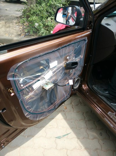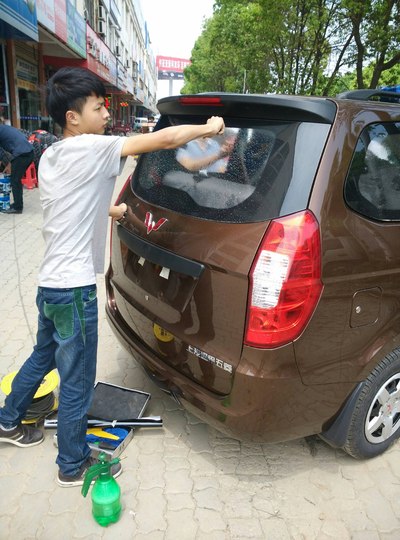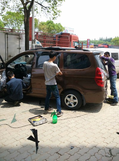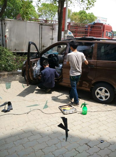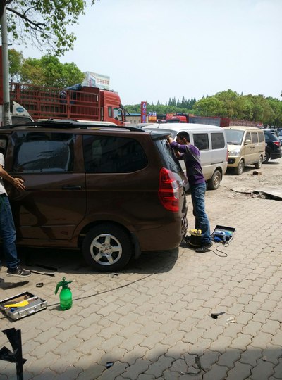 自己开到汽配城,贴膜,装防盗,贴膜花了450带前档,防盗是铁将军的花了260,有点小贵。