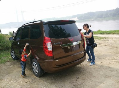 和老婆在江边自己洗车,我提水,老婆负责洗![]()