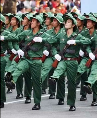这个是越南的预备役,相当于中国的民兵!看看戴的绿帽啊!