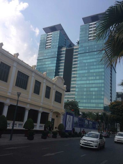 绿色的玻璃屋是胡志明市的地标性建筑!33层楼高!