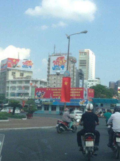 看到了吧!标语上面的30和4,就是说的4月30日,越南人是日月年这样写的!
