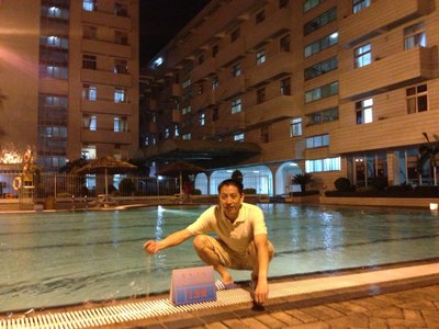公司的游泳池,和游泳池平行的是公司的12层楼高的N9!