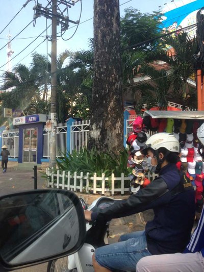 随拍街上卖帽子的!越南一怪:戴着绿帽到处跑!还都说这很环保!!