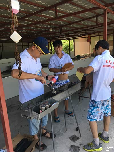 我们车友会老大卢哥(左一戴帽子的)在带头为大家生火。T恤是4S店赞助的,在这里对4S店对本次活动的支持表示感谢!