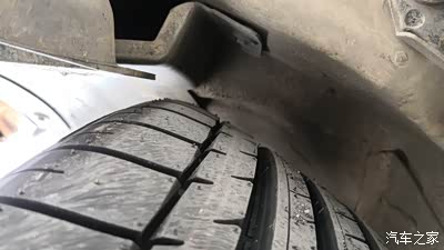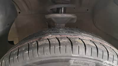 前轮,胎壁离减震器有两个手指宽度,挺好