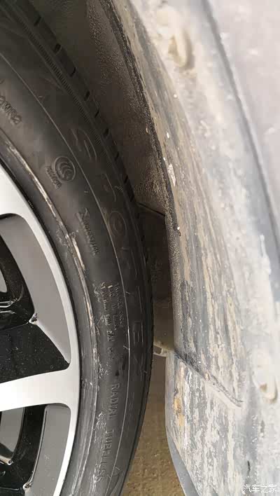 右转打死方向,前边裙底角度看,轮胎距离泥档两三个手指