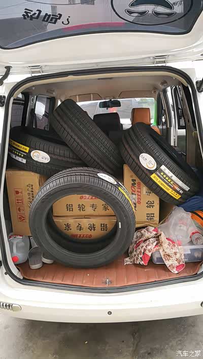 这是跑了差不多三年的原装胎,钢轮毂175胎宽,如果只用来拉货还是挺实用的,但我一般家用的多,据说宏光S最大可以改205宽的胎