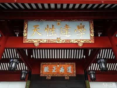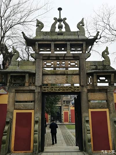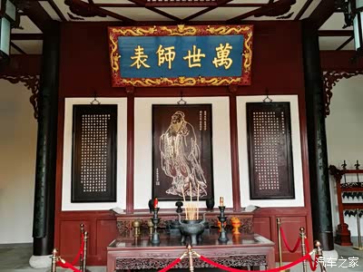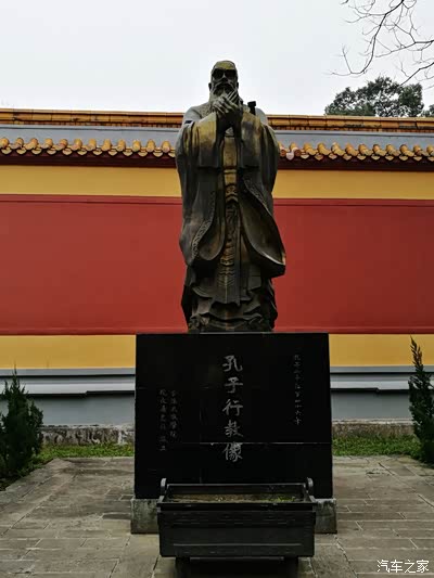 内牌楼矗立着孔圣人的行教像。
