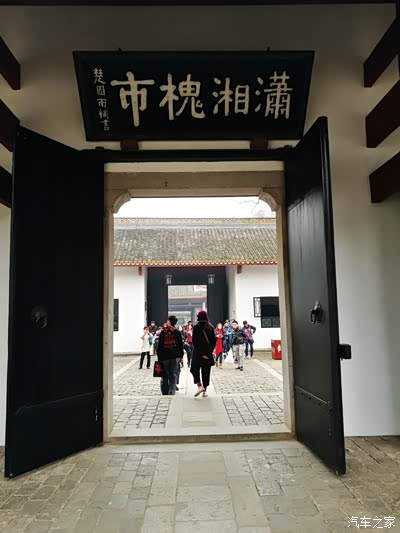 二门背面有“潇湘槐市”匾。原为清代学监程颂万撰书,毁于抗战,现匾为原全国人大副委员长、民盟中央***楚图南补书。”潇湘”泛指湖南,”潇湘槐市”是说岳麓书院是湖南文人、学者聚集的场所,引申为岳麓书院人才之盛,有如汉代长安太学槐市之盛。