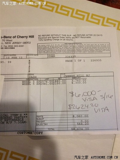 第五次!!也就是今天!!我执着地又过去碰碰运气,结果前两次不靠谱的大胡子和老黑都不见了,取而代之的是一个胖胖的巧克力肤色大叔。我说明了我的来意,还告诉了他我已经来过四次了,希望他能帮我找到我想要的轮毂。巧克力大叔很淡定的问我要了一系列资料就开始从系统寻找了,我心想完了,又要从头开始找,估计没一两个小时是没有结果了。结果仅仅过了5分钟!大叔淡淡地说了句,我找着了。我擦!这!!真的假的啊!!前四次来碰到的都是吃干饭的吗!!他们只是假人吗!!心里想要吐槽的点实在太多就不一一赘述了。大叔转过电脑屏幕给我看,嗯没错,的确是这款!就是价格有点小贵,全部四个一共需要8000美金(不含税)。算了,忍了,对于来了五次才找到这件事来说我已经感觉是种缘分了!办手续和大叔闲聊的时候才得知,巧克力大叔是这儿的主管,已经在这家奔驰干了九年了,果然够专业!我问大叔Can you promise me that the wheel gonna fit my car?(你能承诺我这款轮毂能适合我的车吗?)他霸气地说 I can not promise you, but I can 200%guarantee!(我不能承诺你,但我敢TMD百分之两百保证!!)