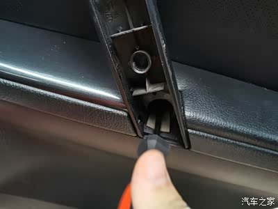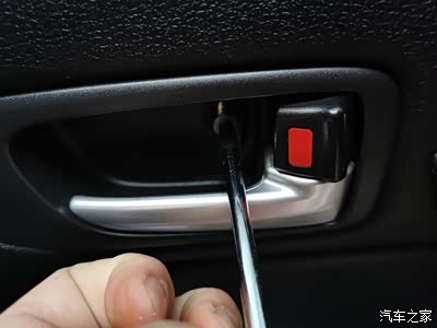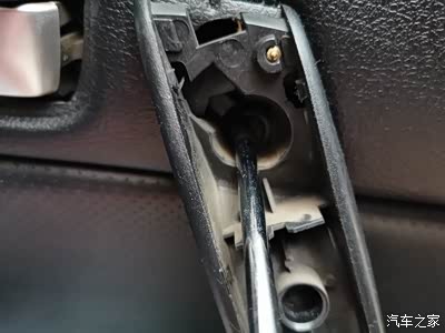先打开后门。然后把门拉手里面的盖板扣开。一个十字螺丝。