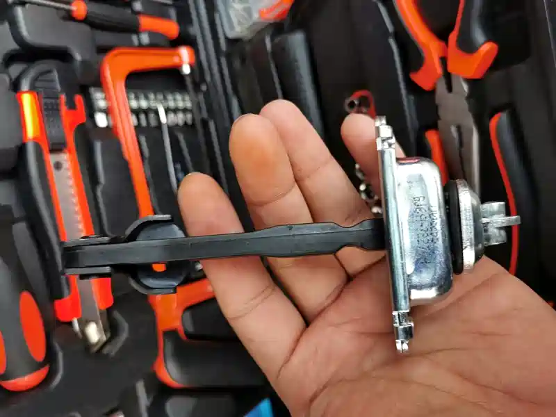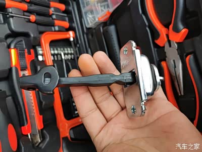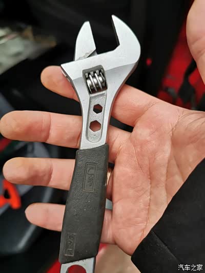 再来个扳子,活板子,开口都可以。拧门上的螺丝。