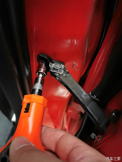 新旧对比一下。开始装车。跟拆下的步骤一样。先装车身上的螺丝。然后拉开车门,对准螺丝,直接拧紧。