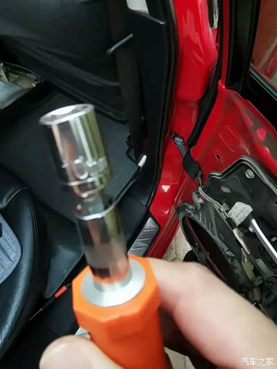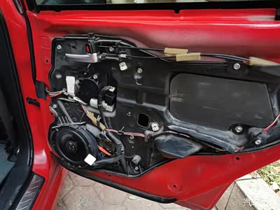上面的螺丝。拧下。然后把玻璃升降器线束拔掉。拆下内饰板。