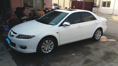 。在看到马自达6的时候,又大又便宜,直接买了!本人以前开面包,手动挡的带劲,就直接提的手动,白色还加了2000大洋。现在老婆不开我的车
