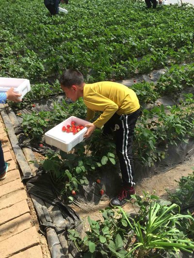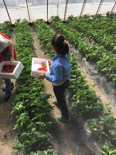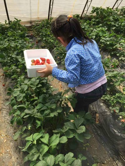 小朋友们很享受采摘的乐趣啊,草莓20一斤,还得帮人家摘下来,哈哈