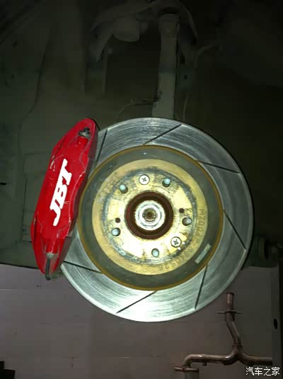 上一套轮毂下岗,漏出330的盘和大四鲍鱼。等会先把新轮毂放上比比,看看能不能避开。