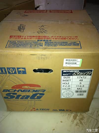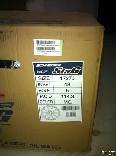 简单介绍我这套轮毂,牌子是国内雅范迪给日本代工的,日本贴的标签是A-TECH ,STAG,国内代号SL77。17寸,ET48,重量大概8公斤。