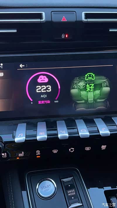 在这样的恶劣天气条件下,我样508L车内的空气净化系统就会启动啦,它是联网之后自发式的行为,这让我们低配车型羡慕不已啊。