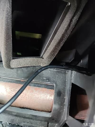 排查: 拆掉主控屏幕,拆掉主控面板,拆掉出风口框架,只留2个大口子(这个忘记拍照)。再按上面流程打开空调,现象依旧。于是打开手电对比两个出风口电机风门。
