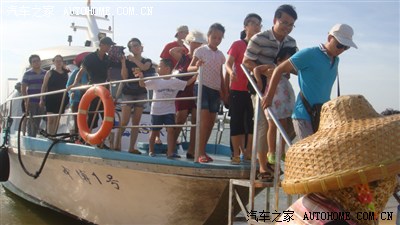 车子停在停车场,坐船过去玉带滩。