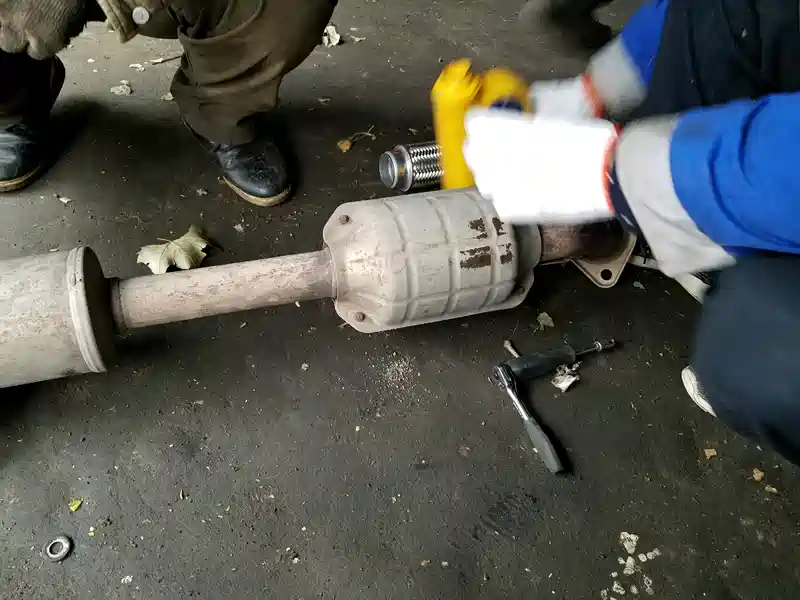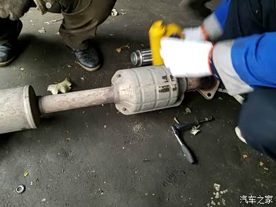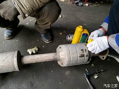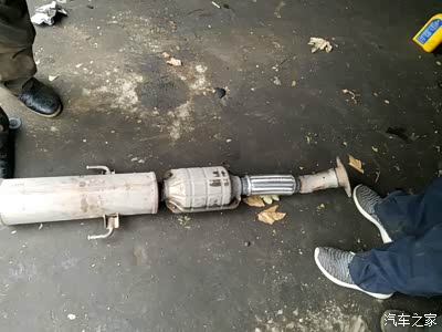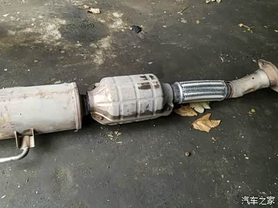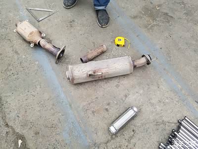 拆下排气管,把三元催化上的保护罩卸下,这样能够焊接的更好。