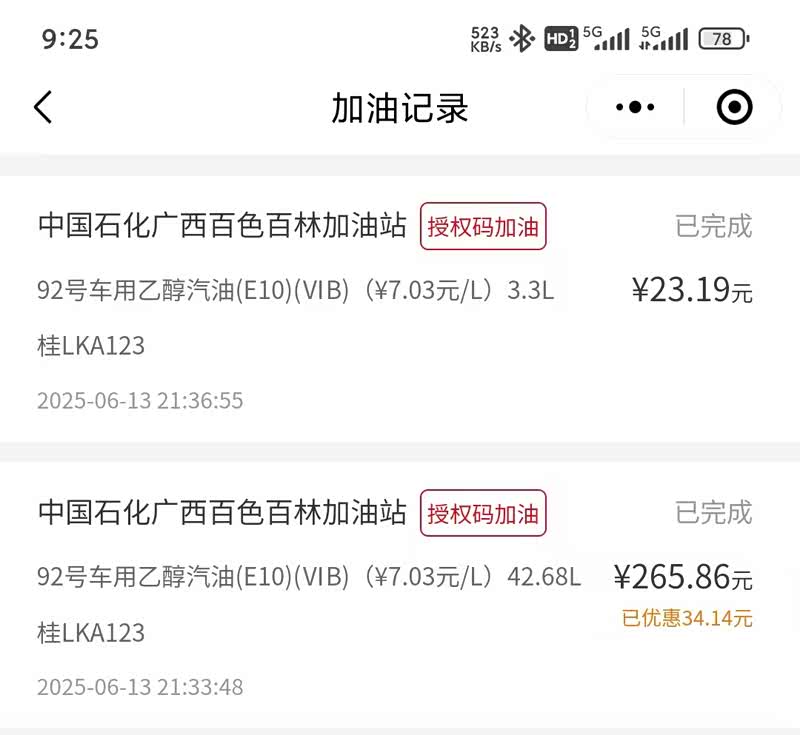 逸动PLUS油箱容量是53升,我是在油灯亮黄灯了之后,大概还继续行驶了20公里这样去加的油,加到跳枪的时候,如图2所示,实际支付加油金额合计是289.05元。一共是3.3升+42.68升=45.98升。